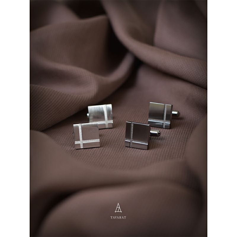 お客様とのお話の中、カフスをする上で大事とされていたのは「シンプルであること」でした。営業上、目立ち過ぎるのは避けたいとのこと。そこで第一弾目のカフスとしてデザインに採用したのはTAVARATのタイピンTps-031、032と揃えられるものにすること。真鍮の土台を削り、トップにサテーナ加工、溝にホーニング加工(どちらもジュエリーなどに使用される加工です)を施したシンプルなデザインはカフスにしてもシンプルかつ格好良い雰囲気を作り出してくれます。定番のシルバーと、見る角度によってブラックからシルバーの色変化を見せるブラックシルバーの2色よりお選び頂けます。