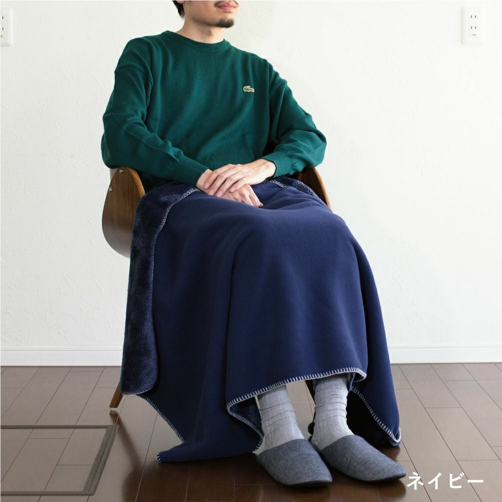 高身長の男性でも足をちょうどよく覆える長辺140cmの大きさ。向きや畳み方を変えて、好みの掛け方でお使いいただけます。