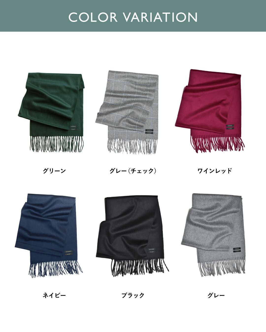 カシミヤ100% 原毛:内モンゴル産 紡績:大津毛織(経糸)、東洋紡糸工場(緯糸) |