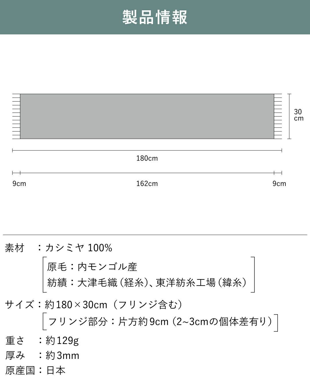 約180×30cm(フリンジ含む) フリンジ部分:片方約9cm(2~3cmの個体差有り) |