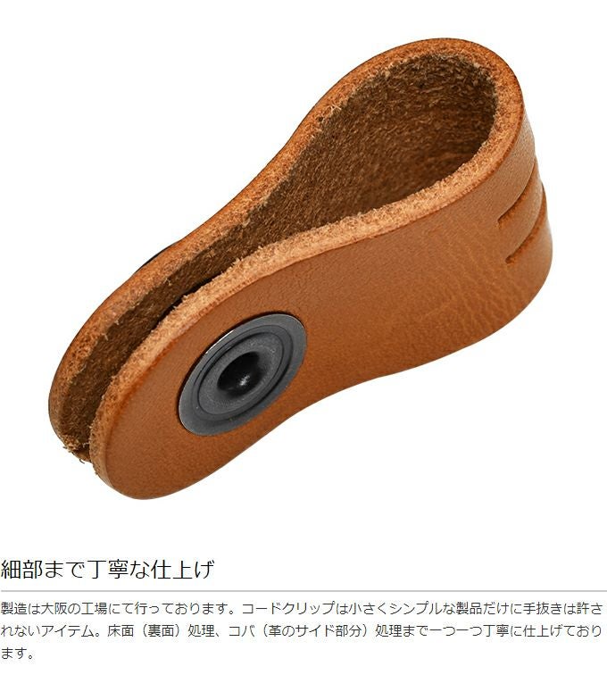 製造は大阪の工場にて行っております。コードクリップは小さくシンプルな製品だけに手抜きは許されないアイテム。床面(裏面)処理、コバ(革のサイド部分)処理まで一つ一つ丁寧に仕上げております。