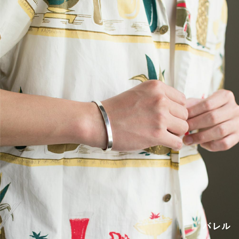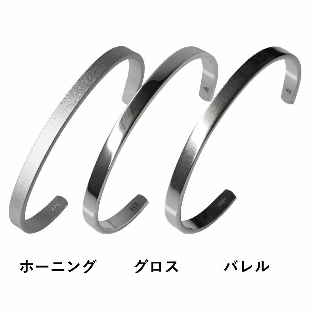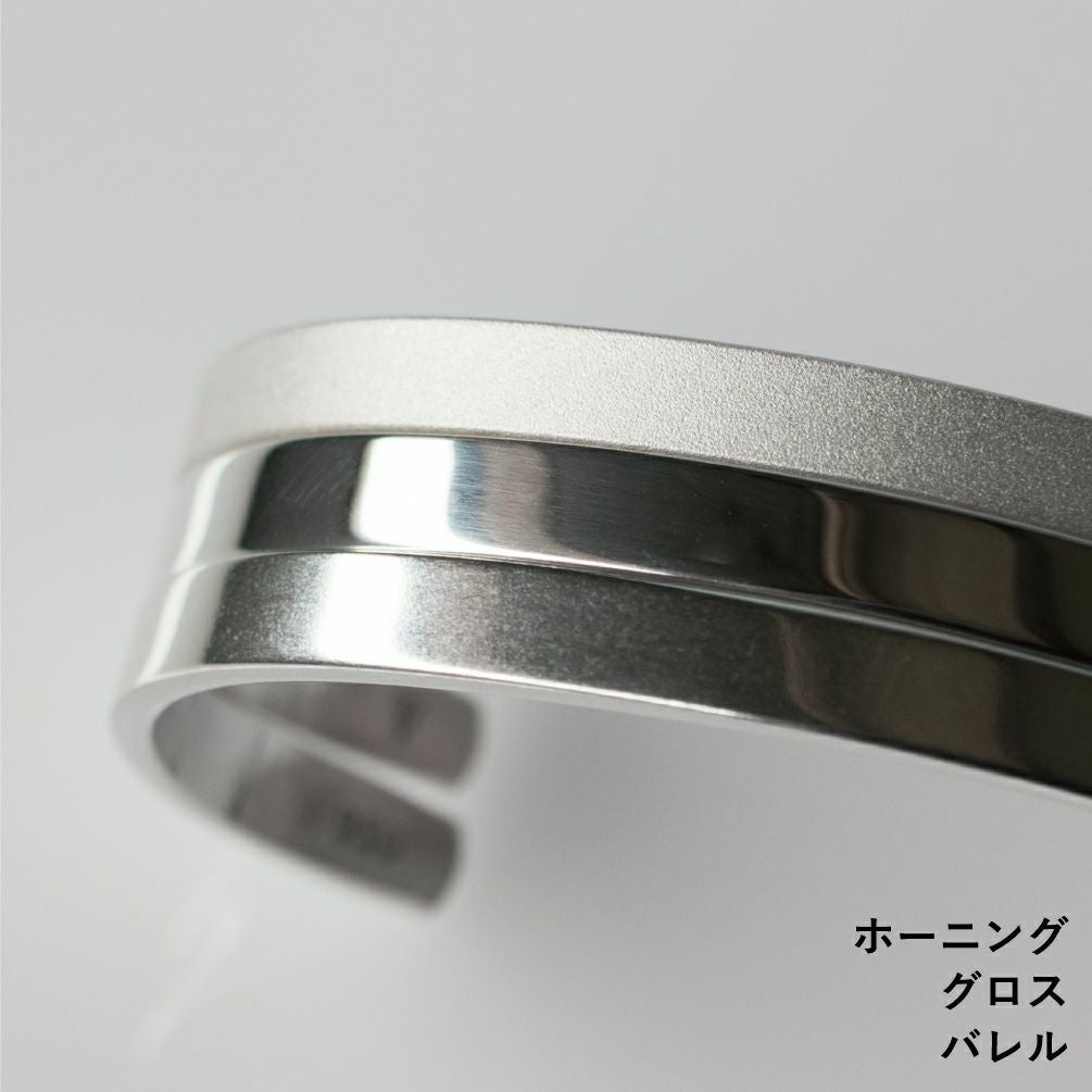 バングルの表面は、マットな質感のホーニング、艶のある光沢感が美しいグロス、自然な経年感をほどこしたバレルの3種類。それぞれが個性的な質感です。
