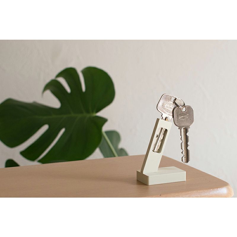 よく目にするのは5・6本くらいかけられるファミリータイプのキーラックですが、こちらは、自分だけの自分のためのシンプルなもの。家族分などのその他の鍵と一線を画し、インテリアの邪魔にもならないスマートなデザインで、金属の心地よい重さも感じられます。鍵は、持ち物の中で最高レベルの貴重品にもかかわらず、つい適当に置きっぱなしにしがち。