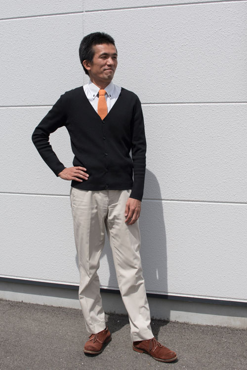 ◆店長 山本 カラー:オレンジ 「いつもはノーネクタイですが、来客時やちょっと気分を上げたい時に付けています。ワイシャツとカーディガンに合わせると、固すぎないけど、きっちりした感じに。明るいオレンジがアクセントにもなります。」 ↓Tps-089ウールニットタイ ![]() ![]() |