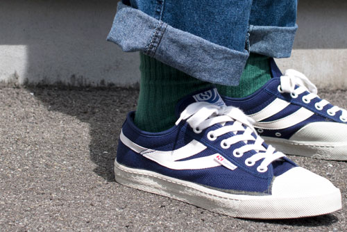 ◆デザイナー南田 カラー:エメラルドグリーン 「今回初めて、グリーンのニットタイに挑戦してみました。ニットタイから全体の色のバランスを見て、初夏に涼しさを感じられるようなものを目指しました。」 ↓靴下も色合わせ!