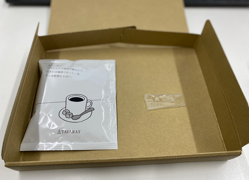 ちなみに、左側のドリップコーヒーは、ノベルティでお付けしているもの。