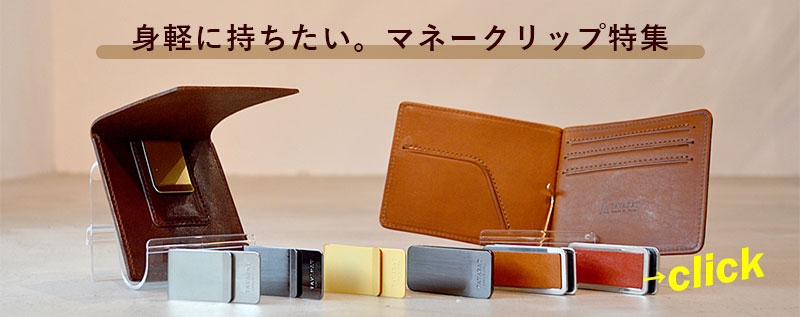 金具の構造により、お札を挟む力が弱くならないマネークリップです。 クリップ式のマネークリップより、若干重みがあり、厚みもありますが、 永く使うことができます。商品ページはこちら→