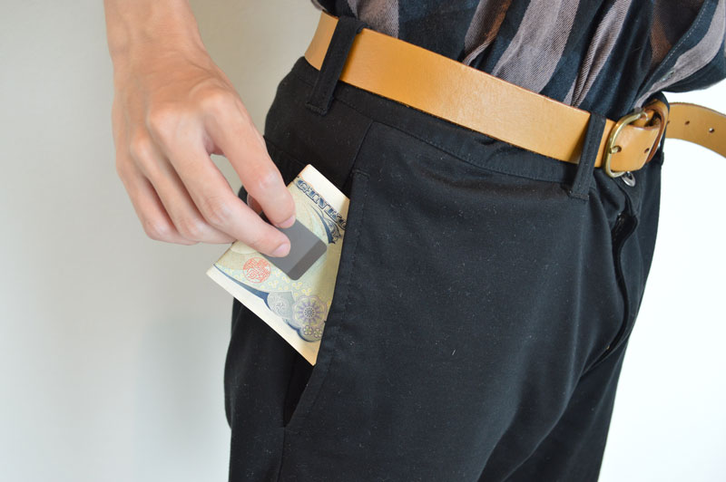 これ一つで外出、パンツの前ポケットにも入れられて「最高に身軽!」を実感。