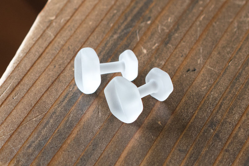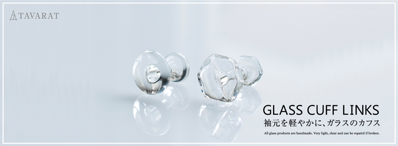 カジュアルで華奢なカフス ボタンホールに通すだけの、ガラスのカフスです。珍しいガラス製で、爽やかな印象に。![]() |