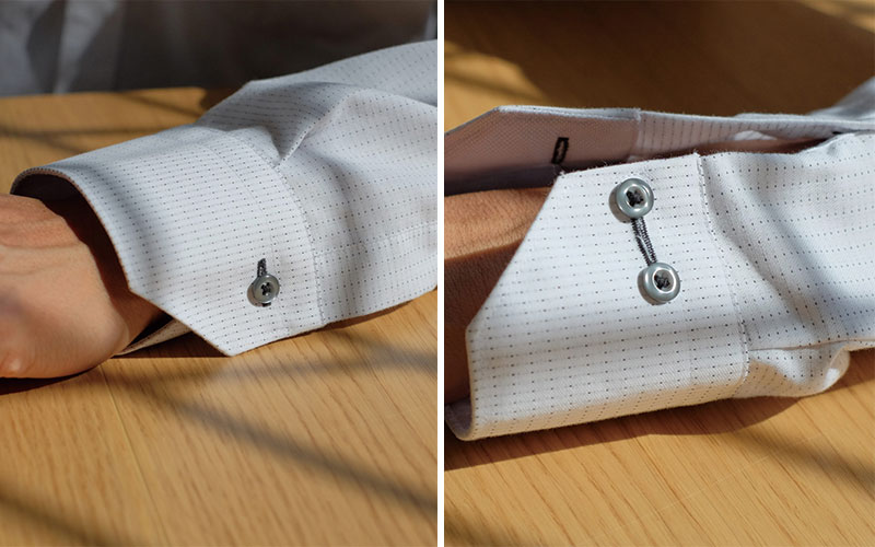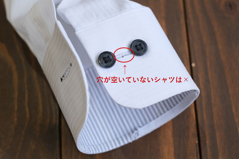カフリンクスをシャツに使うには、袖の両端にボタンホールが必要です。 付けられないシャツもありますので、お手持ちのシャツを確認してみてくださいね。