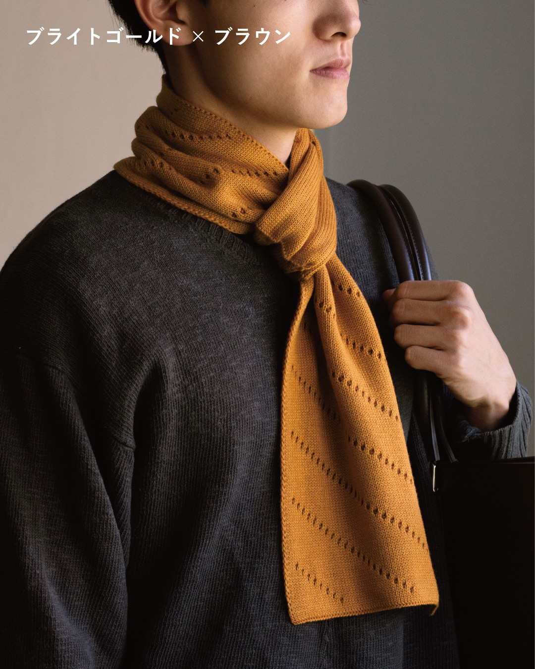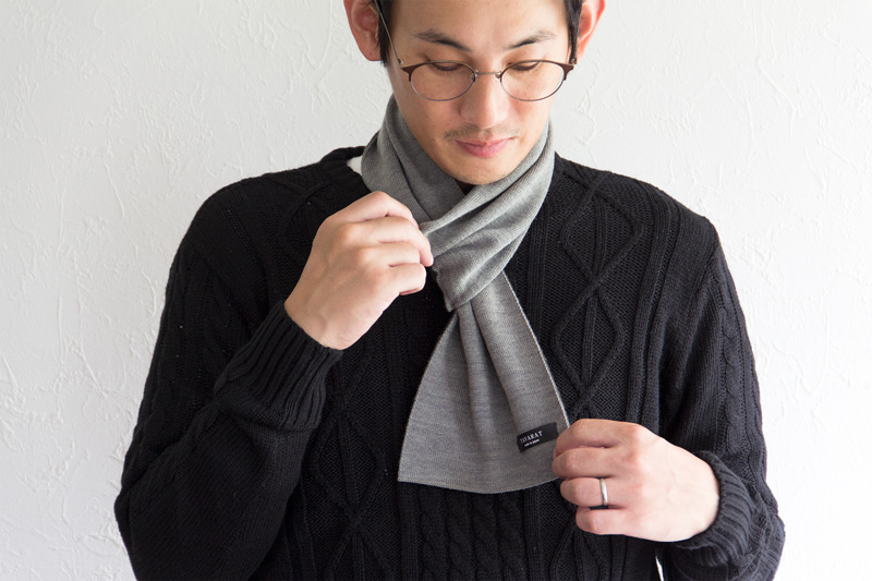 という2つの目的からこのマフラーが生まれました。 首周りに1枚巻いているだけで、結構暖かく、とはいえ分厚過ぎないので、持ち運びに便利で、長い期間使うことができます。1枚持っていると重宝しますよ!(店長/山本)