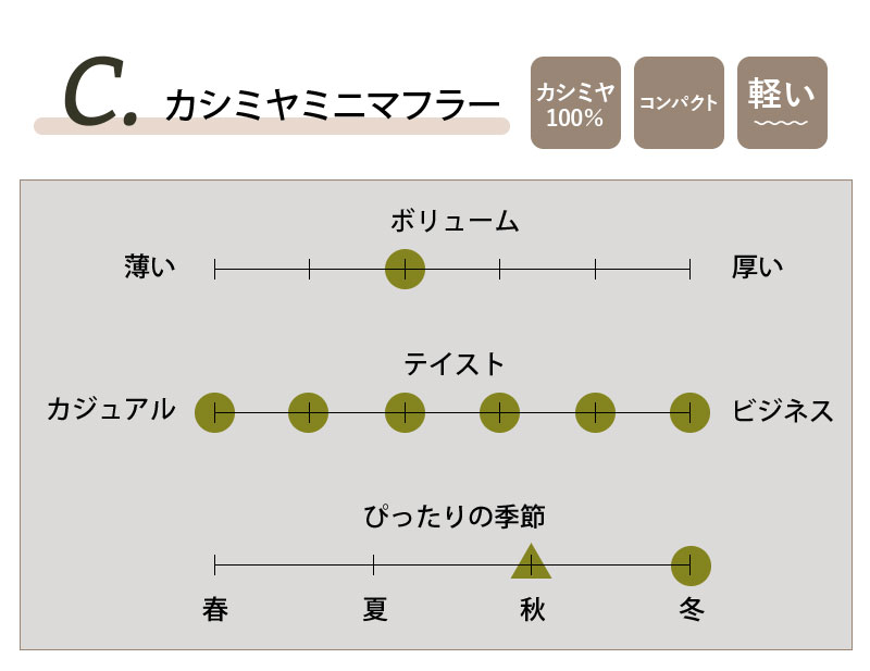 「年々冬が短く、暖かくなってきて、これまでのマフラーよりもコンパクトで薄い方が使いやすいのでは?」