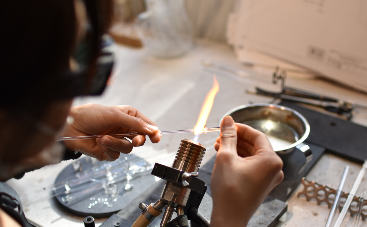 ガラスについてはHARIOランプワークファクトリー株式会社さん。コーヒーのガラス機器で有名なHARIOが手掛けるガラスアクセサリーのブランド・工場さんです。