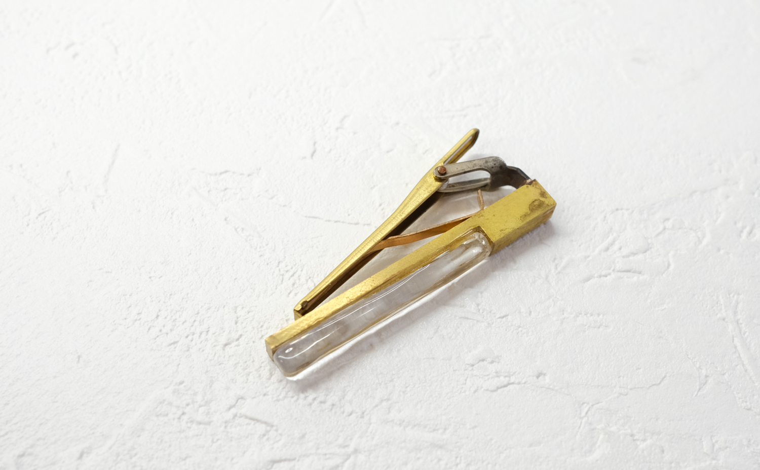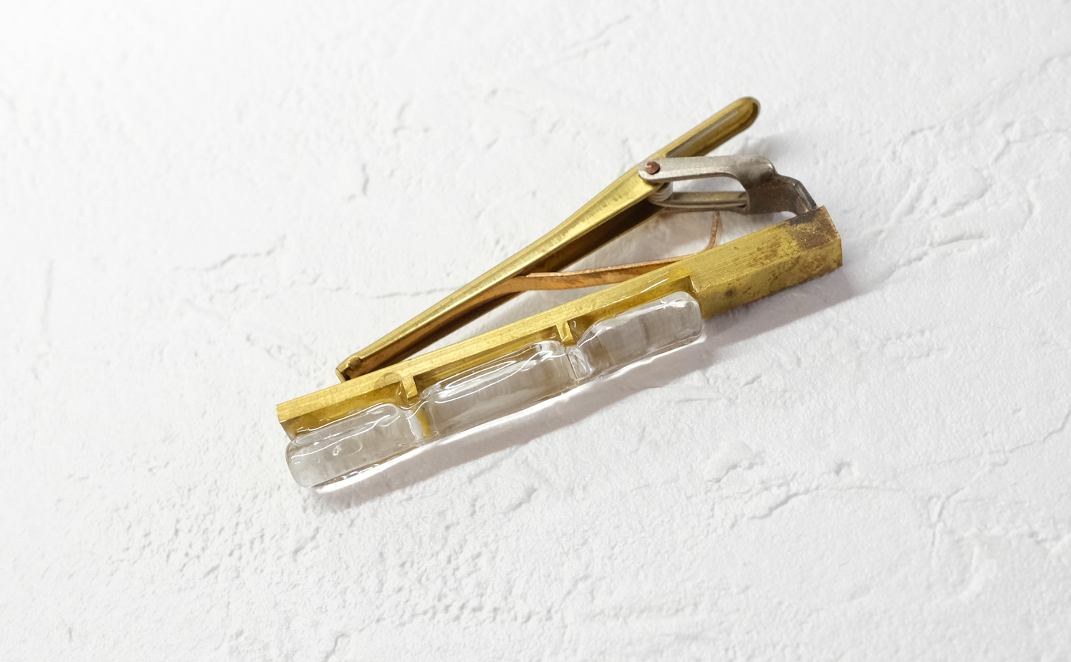 作った側が何度も言うのもはばかられるのですが、しかし私のこのネクタイピンに関する感想は、「美しい」。老舗の金属加工工場、ガラス加工工場。それぞれの技術や経験で、いまの時代に合ったシンプルかつ美しい、この時代だからこそつけてみたいと思える「ネクタイピン」が完成したことを嬉しく思います。