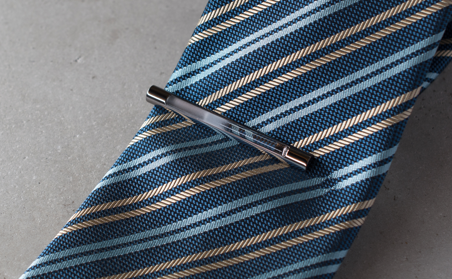 装着時には、クリア部分が透過しネクタイの柄を映し出します。