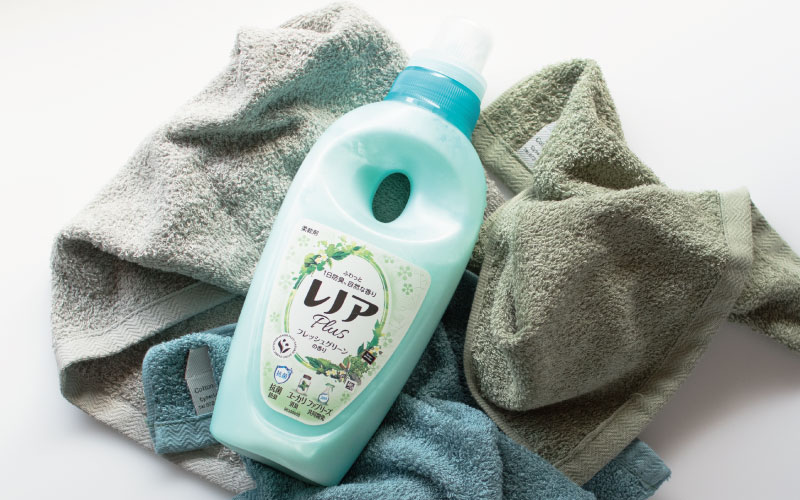 生地をふわふわにしてくれる柔軟剤。タオルを柔らかくしようと過度に使用するとパイルが伸びたり吸水性が悪くなる原因に。タオルを使っていくなかで 「ゴワゴワしてきたかな?」と感じたときに、適量の柔軟剤を使ってみてください。