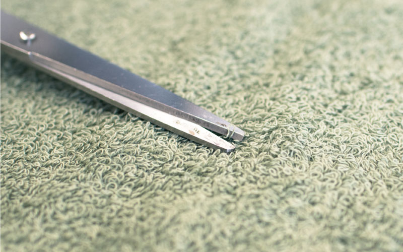 お洗濯などを繰り返すうちに、一部のパイルが伸びる場合がございます。 伸びた場合は引っ張ると生地を傷める原因となりますので、短く切りそろえてください。