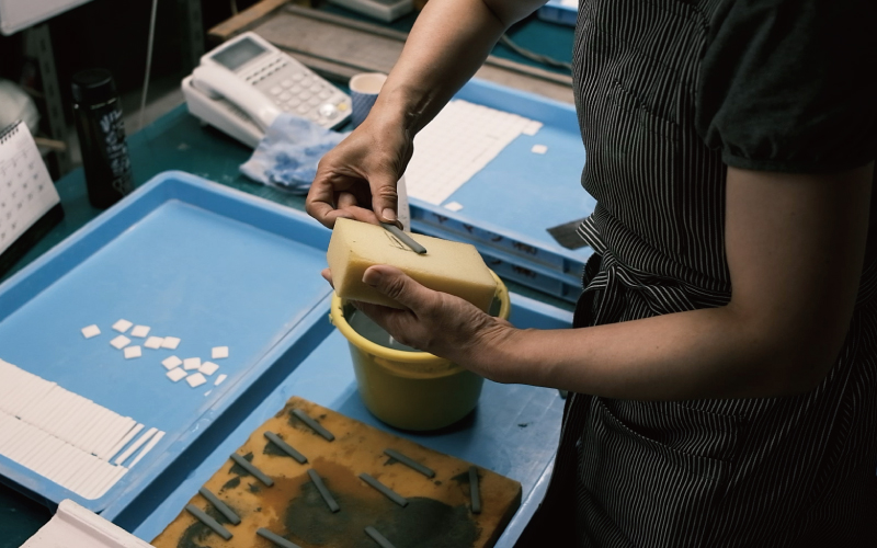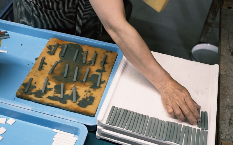 今回の記事では、タバラットとして新しい素材へ挑戦することになった陶器のネクタイピンとカフス、その生産工程を抜粋にはなりますが、みなさんにも見ていただきたいと思います。