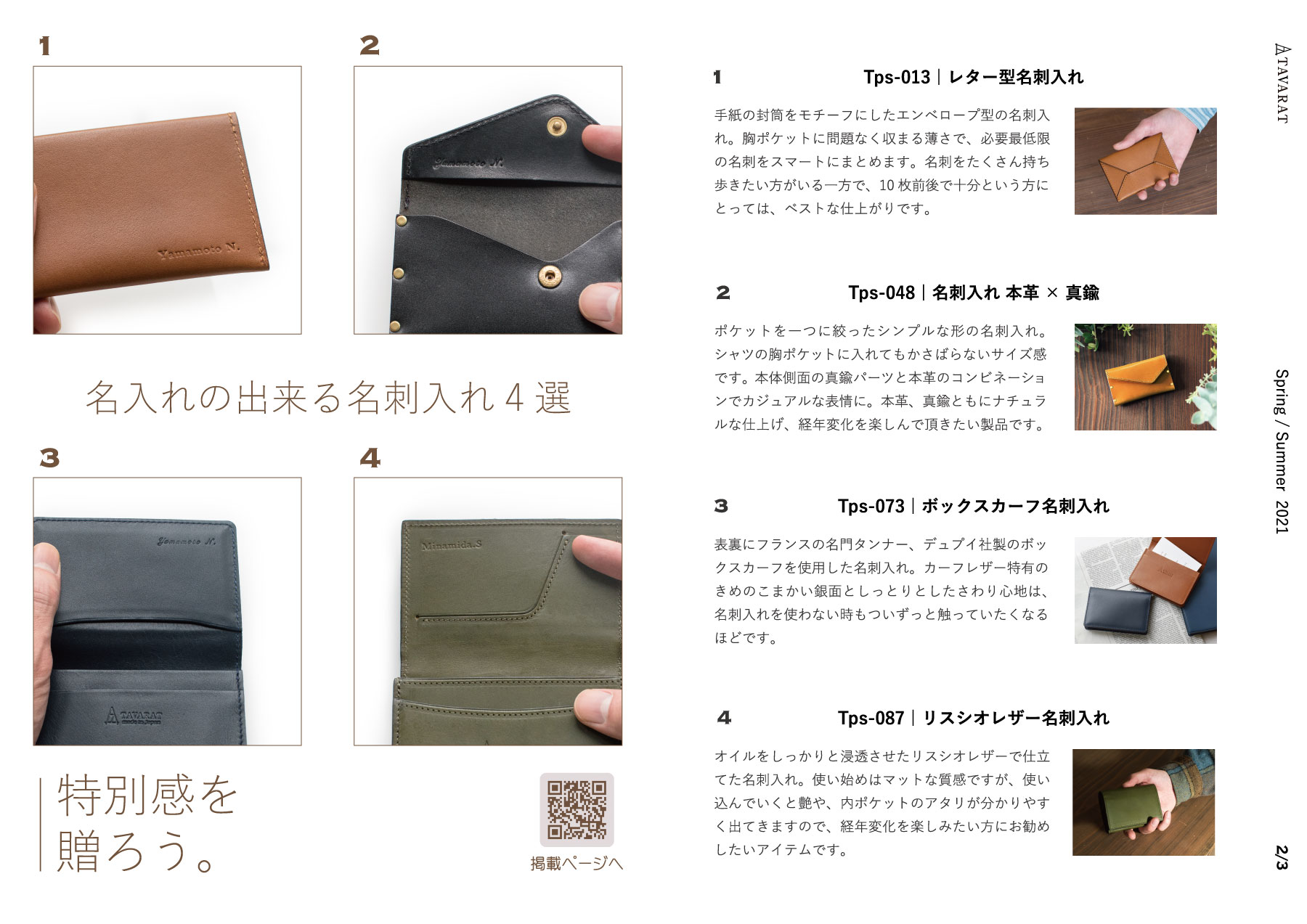 名入れの出来る名刺入れから4品をご紹介します。
