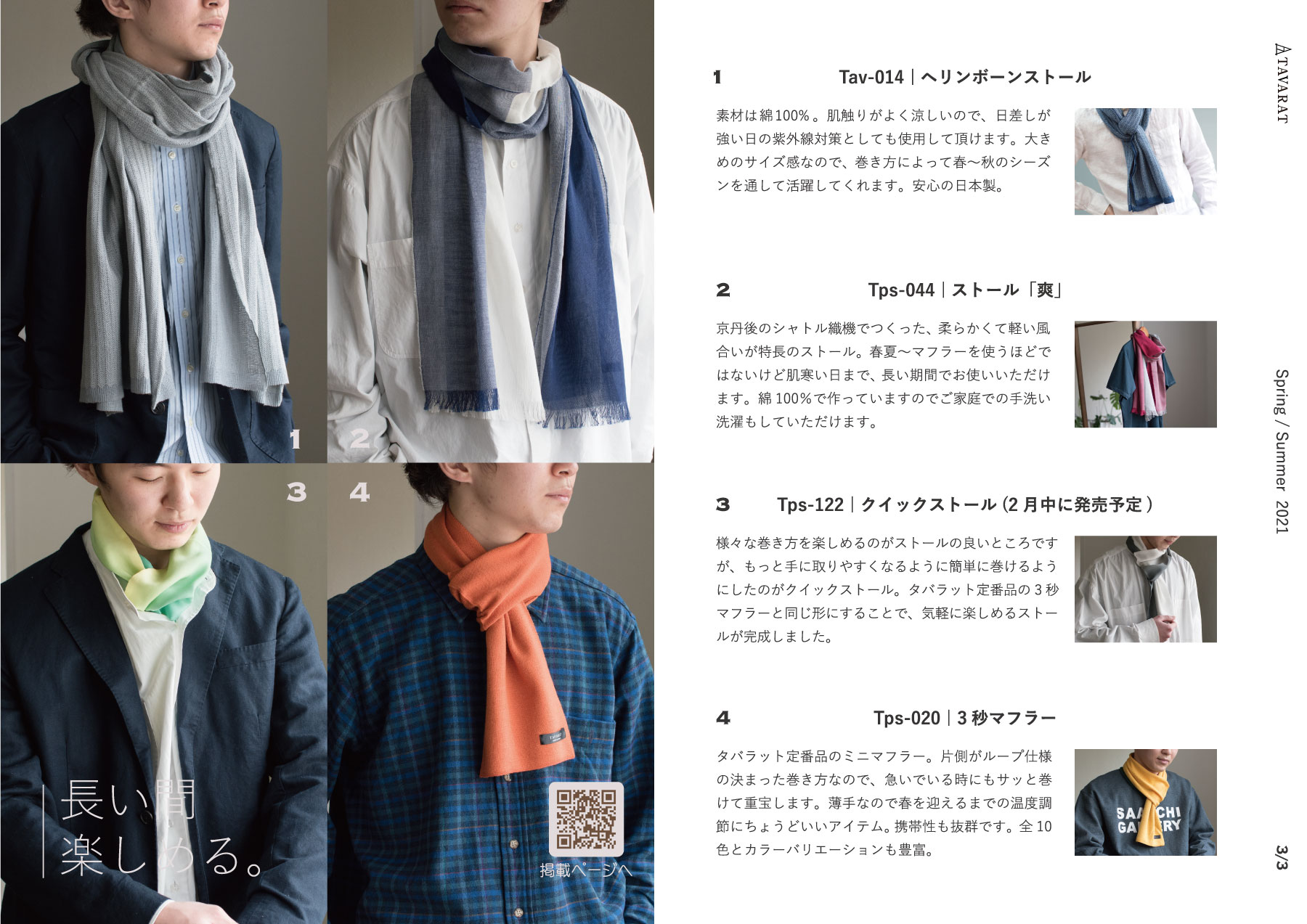 ストールや小さいマフラーは季節の変わり目にも使いやすいアイテムです。