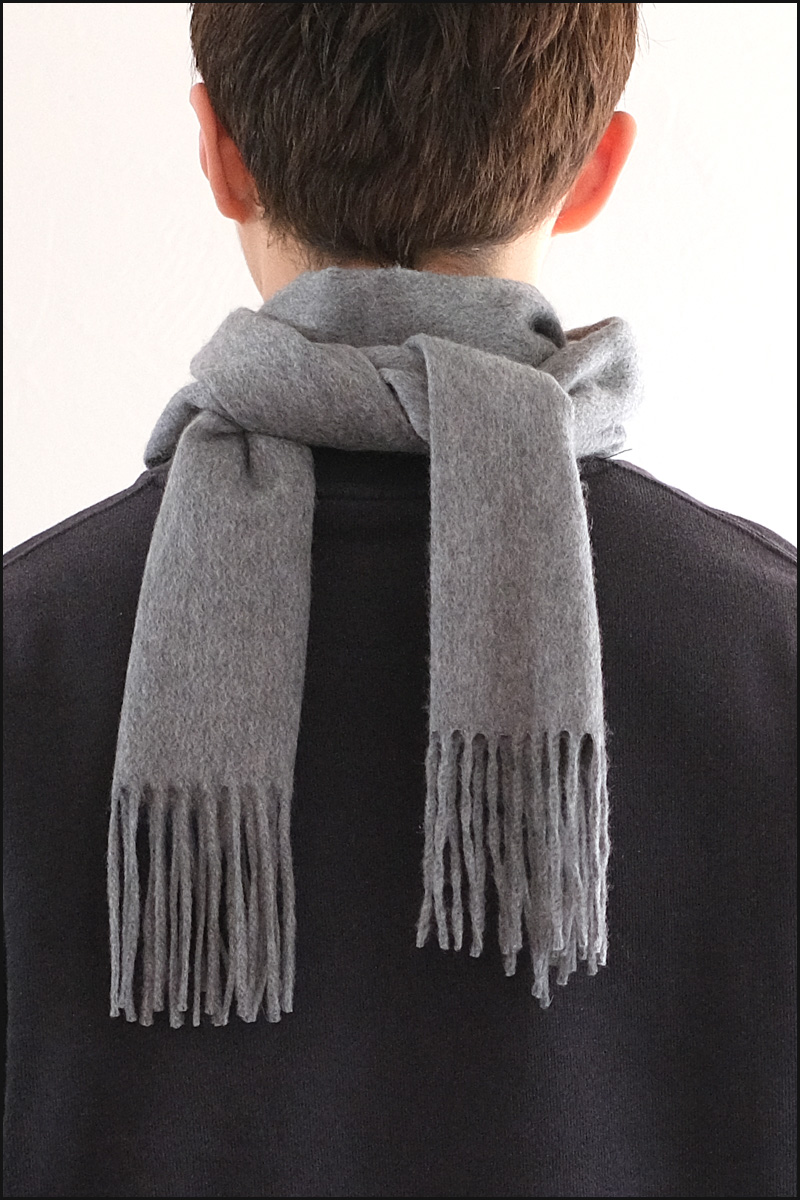 結び目が前に来ないバック巻きは首元はボリューム感がありますが、胸元はすっきりと見えます。マフラーの端が垂れているのが嫌な人にオススメです。