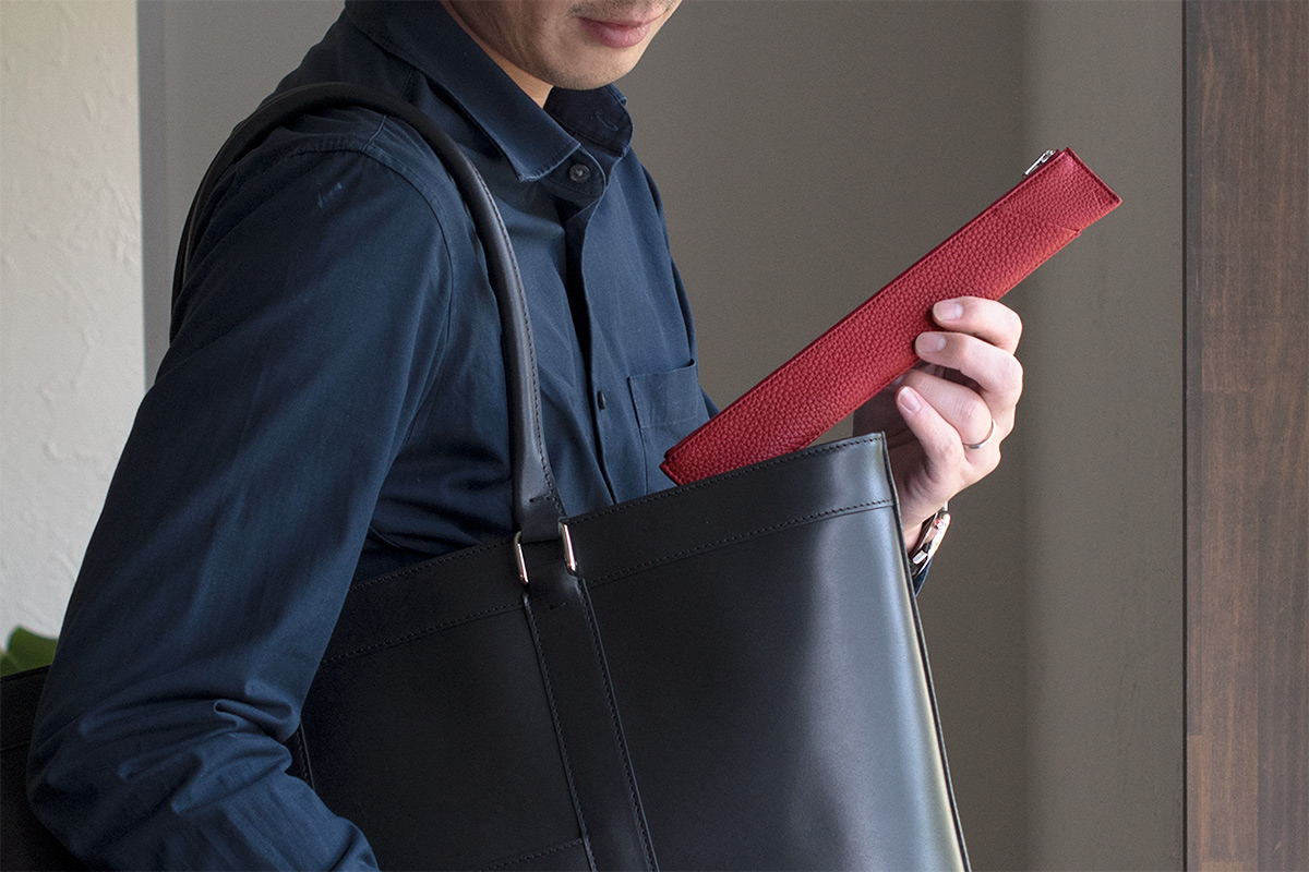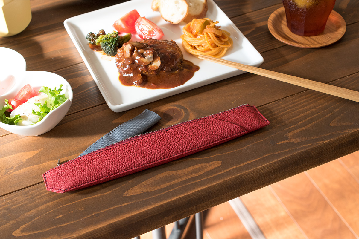 自分用のお箸を携帯するためのケースです。一見ペンケースのようにも見えるこのケースは、男性用サイズのお箸がすっきりと収まるサイズで仕上げています。このケースにお箸を収納してビジネスバッグやクラッチバッグなどに入れておけば、いつでもどんなシーンでも自分専用のお箸をご使用頂けます。