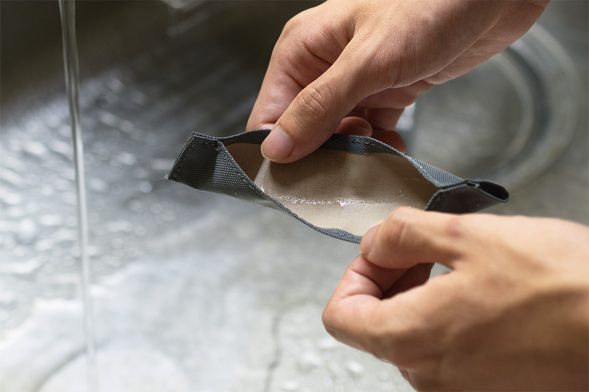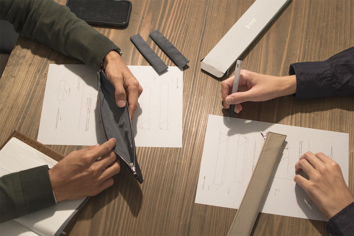 OTEMOTO CASEは割ばしの袋をイメージしたデザインなのですが、それを革でどう再現するかという点が一つ、それと、一番の課題は衛生面への配慮。食事をした後のお箸をいれるのですから当然洗えないといけません。OTEMOTO CASE自体を洗うという選択肢も当初はありましたが、それでは製品のディテールが崩れてしまうので、「内袋」を入れ、それを洗って使えるようにすることで衛生的にお使い頂けるアイテムになりました。