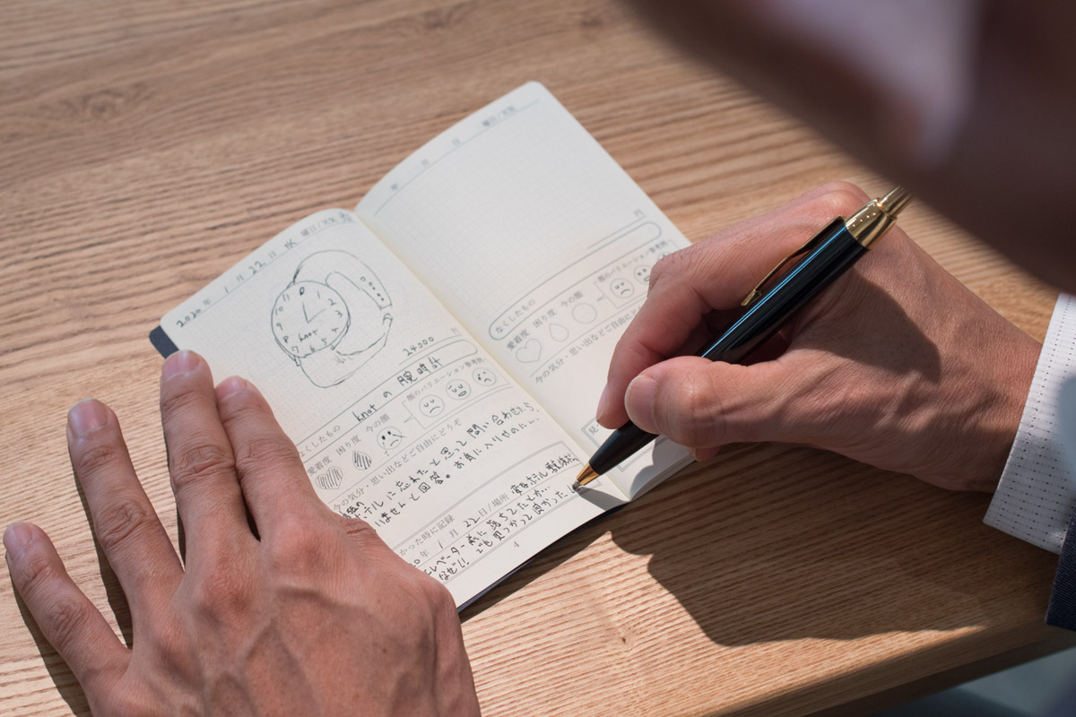 タバラットのお客様は40代~60代の方が多く、普段はそれなりの立場でお仕事をされる男性です。会社では「しっかりとした大人」を演じていますが、しかし人間はそんなに完璧ではありません。その代表がなくしもの。私もそうですが、頻繁にモノをなくします。そんなとき、恥ずかしかったり悲しかったりする姿を見せにいくのがこの年齢の男性。だから、それをこっそりと書き留める日記を作ってみたい。そしてそんな「ちょっと恥ずかしい自分」を笑って楽しみたい。そんな想いから開発がスタートしました。