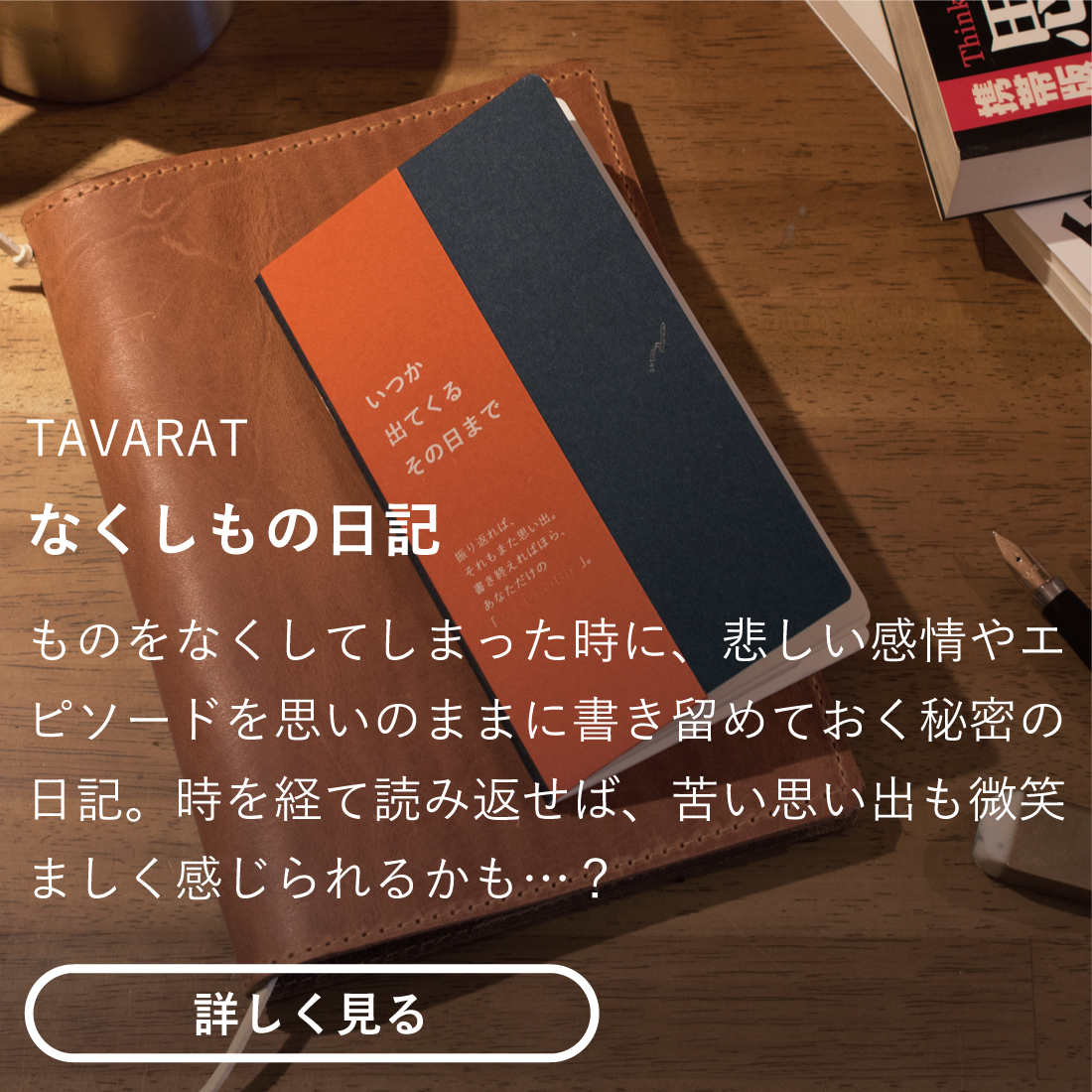 こんにちは、マネージャーの山本です。TAVARATでは、「笑」というテーマの中で「なくしもの日記」という商品を作りました。
